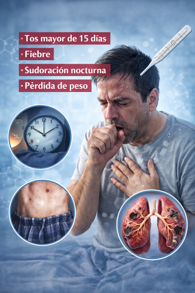 La Tuberculosis es una enfermedad que se caracteriza por 4 síntomas principales que son: tos mayor de 15 días, fiebre, sudoración nocturna y pérdida de peso. Hacemos un llamado a toda la población que, si presenta una tos mayor de 15 días de evolución, se acerque a las instalaciones de salud primaria, para realizar una prueba molecular de Tuberculosis.