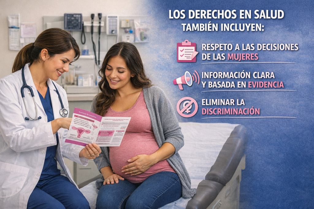Los derechos en salud también incluyen el respeto a las decisiones de las mujeres, asegurar información clara y basada en evidencia, y eliminar cualquier forma de discriminación.