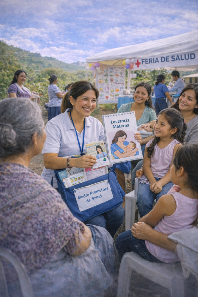 Aprovechamos la oportunidad para reconocer la labor de las Madres Promotoras de Salud, mujeres que reciben capacitación en temas como lactancia materna, alimentación saludable, actividad física, vacunación, cuidado prenatal, higiene, prevención de enfermedades, prevención de violencia, quienes, se convierten en agentes activos de promoción de la salud y prevención de la enfermedad en sus familias y comunidades.